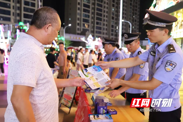 组织警力深入商超、社区、夜市、广场等人员密集场所,通过发放宣传材料、现场讲解等群众“看得见、容易懂、记得住”的形式,开展反诈、防盗、防骗、防溺水、拒打架、禁黄赌毒、交通安全等安全警示宣传教育,引起群众共鸣,提升宣传效果。