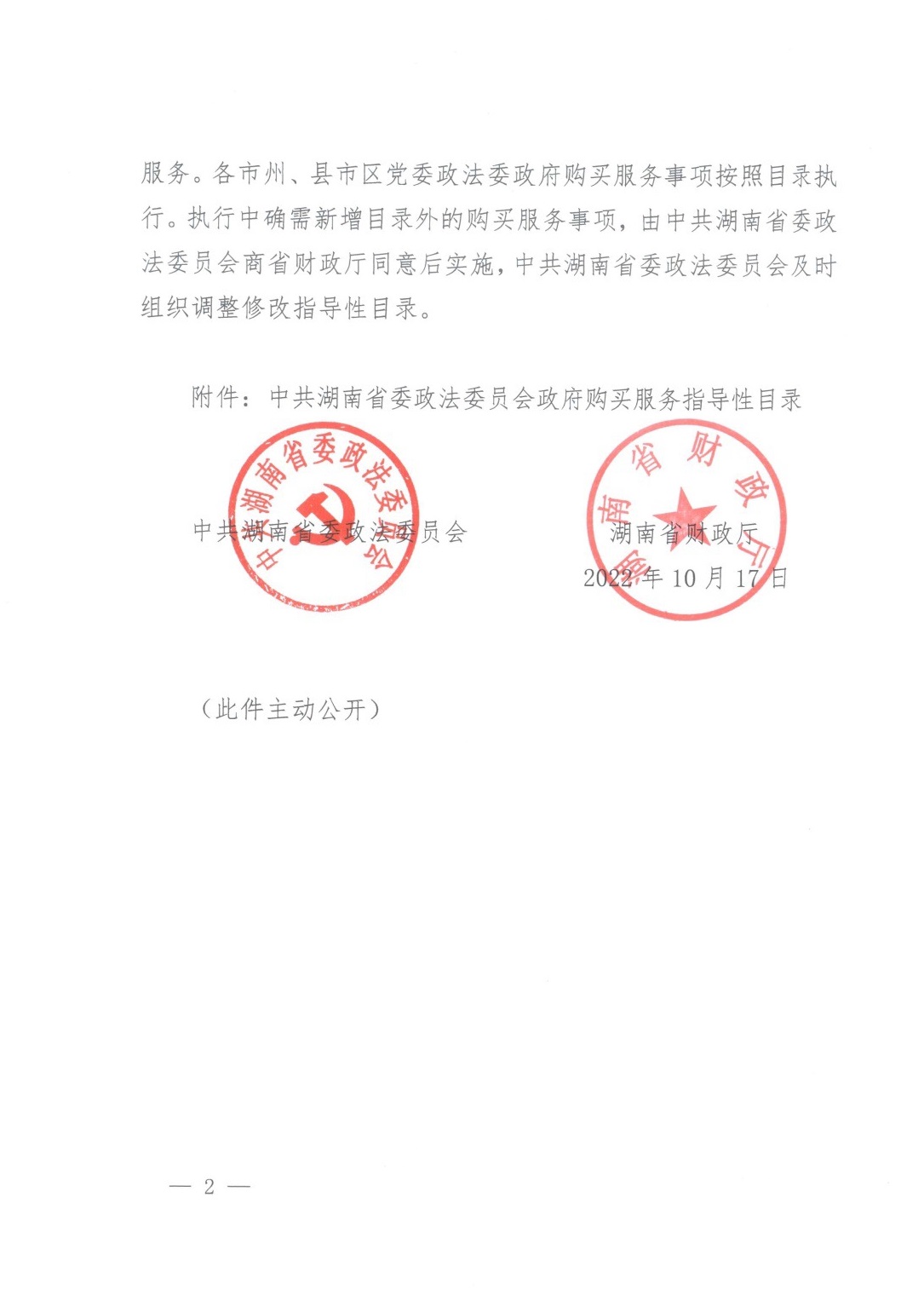 关于印发《中共湖南省委政法委员会政府购买服务指导性目录》的通知
