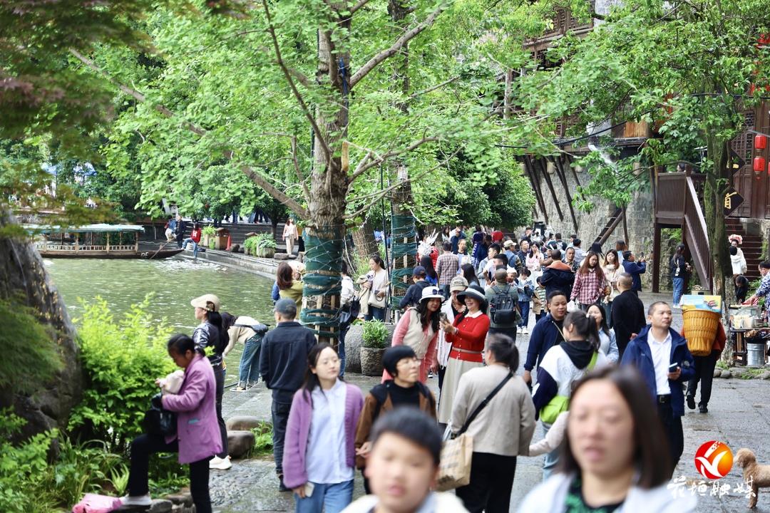 “五一”假期,边城茶峒景区人气爆棚,不管是翠翠岛还是老街小巷,满眼都是“人从众”,游客们在假期里感受这座小镇的独特魅力。为确保游客安全出游,花垣公安围绕景区重点区域及人员密集场所加强巡逻防范,为景区提供了一个安全、有序的游玩氛围。