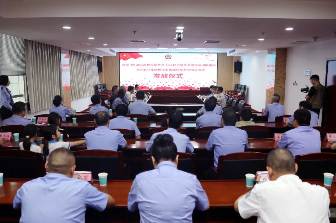 文章来源:湖南公安 作者: 时间:2023-09-07 18:20:249月7日上午,湖南省公安民警基金会、湖南省教育基金会在郴州市公安局联合举行“金秋助学”资金发放仪式,为全省109名牺牲、伤残、特困民警子女发放助学金。