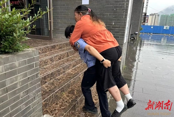 8月7日下午,一场大雨刚刚停下,一位步履蹒跚七旬老妇人来到洪江区公安局河滨路派出所,找到刚入警的女民警殷玲寻求帮助。老人称其结婚证遗失,询问能否补办结婚证明。该业务属于民政部门管辖,应当前往政务中心办理,但政务中心离该派出所比较远,看到老人无助的神情,民警迅速与政务中心民政工作人员取得联系,得知可以补办的情况后,殷玲向所领导报告,驾车把老人送至政务中心,由于老人腿部刚经历过大手术,伤口尚未完全愈合,行动不便,加之雨后地滑,担心老人摔倒受伤,殷玲提出背上老人,看到比自己身板小的民警,老人觉得不好意思,先是婉拒了,但自己的确行动吃力,在民警的坚持下,老人最终接受了。政务中心的工作人员和办事群众看到这一幕,纷纷竖起大拇指称赞道:“这样的警察好样的!”